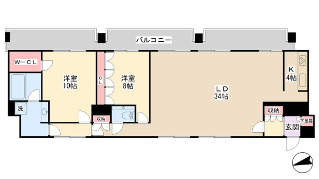 洋室10帖、洋室8帖、LD34帖、K4帖