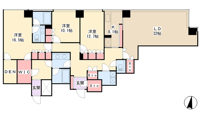 洋室10.1帖、洋室12.7帖、洋室16.5帖、LD32帖、K8.1帖